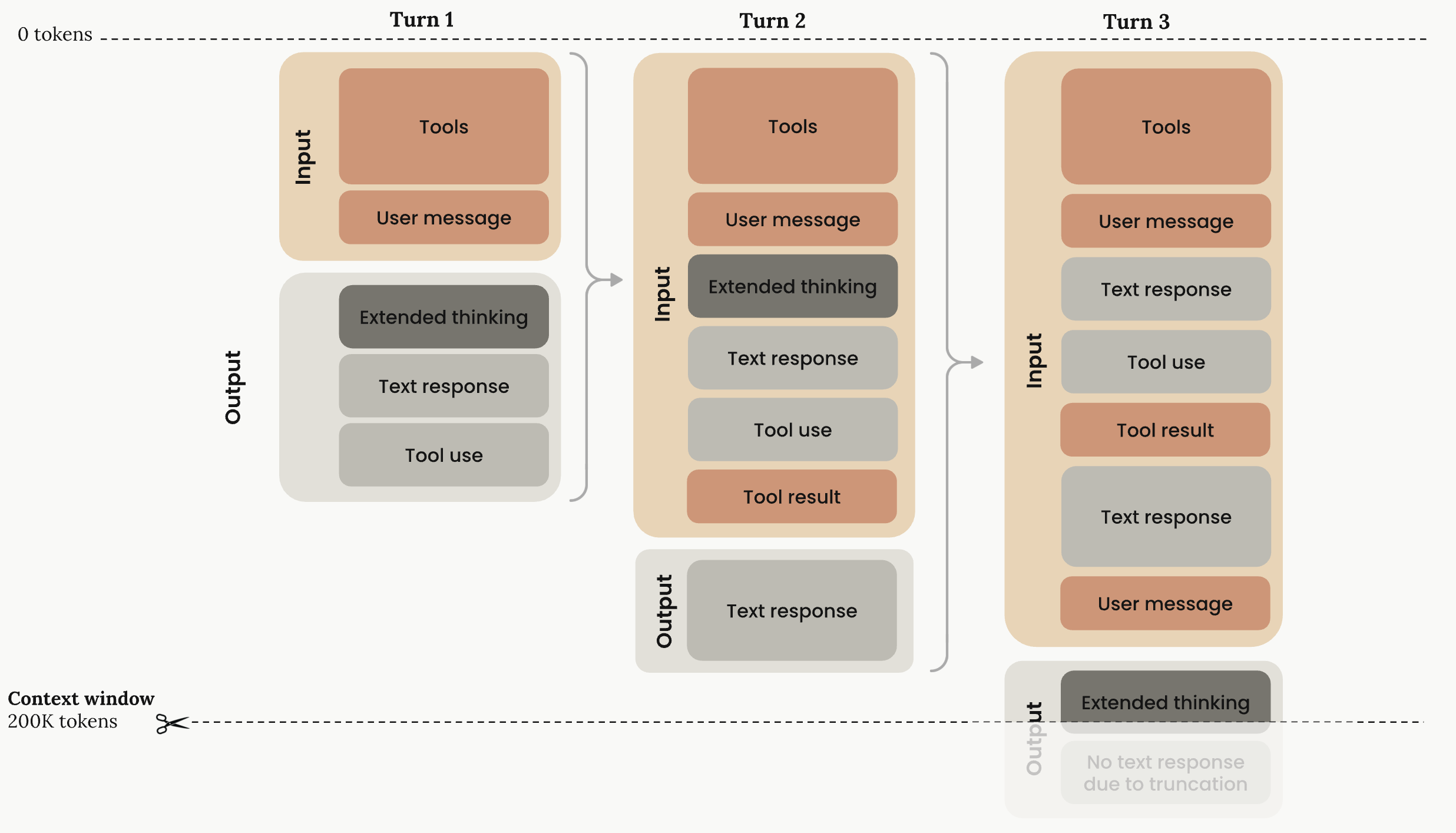 Fig. 4. The context window token management when combining extended thinking with tool use in Claude. (Image source: Claude Docs)