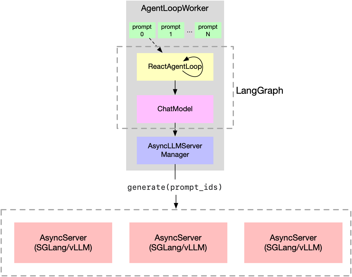 Fig. 13. The agent loop worker of verl based on React. (Image source: ByteDance Seed, 2025)