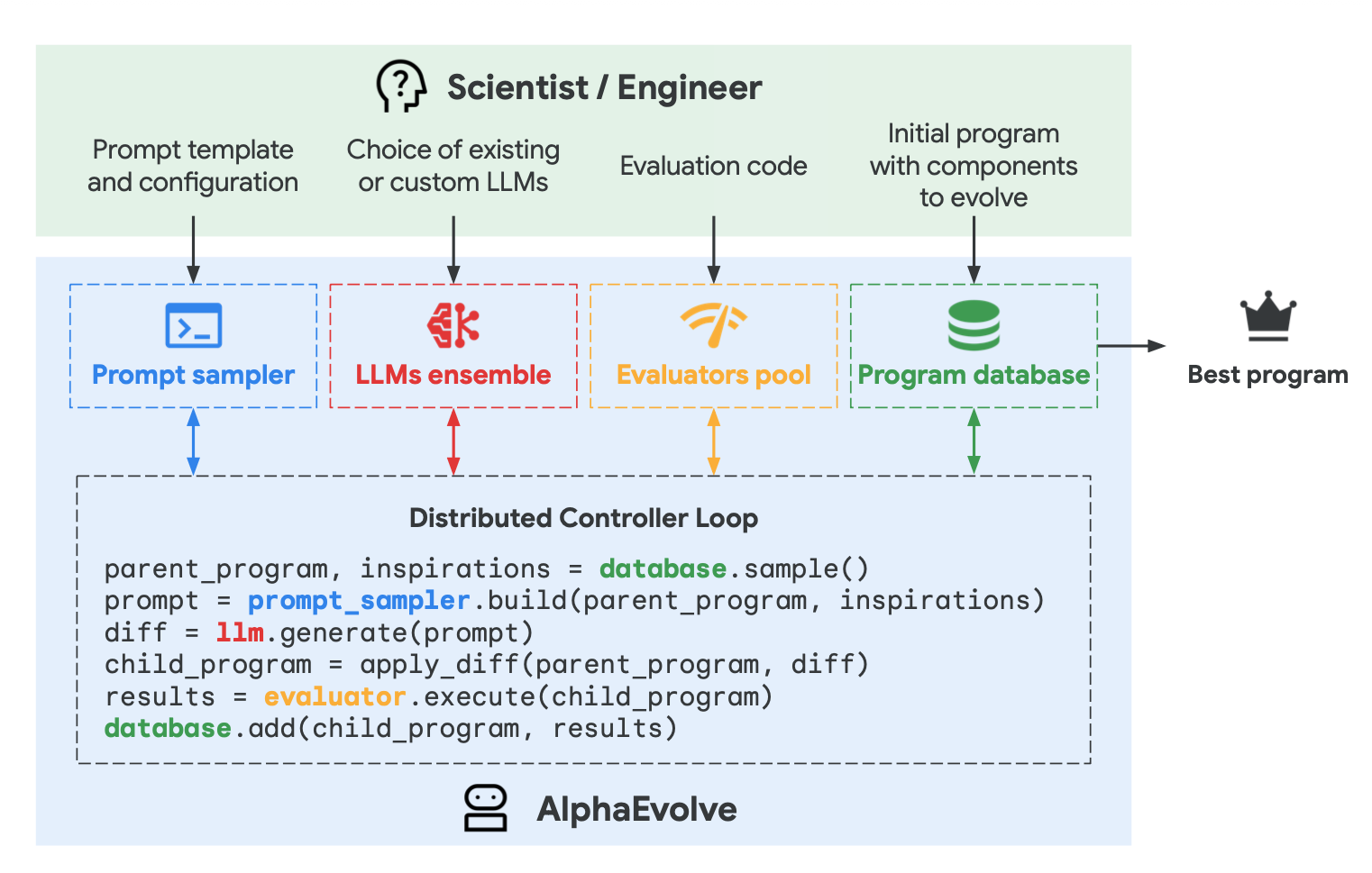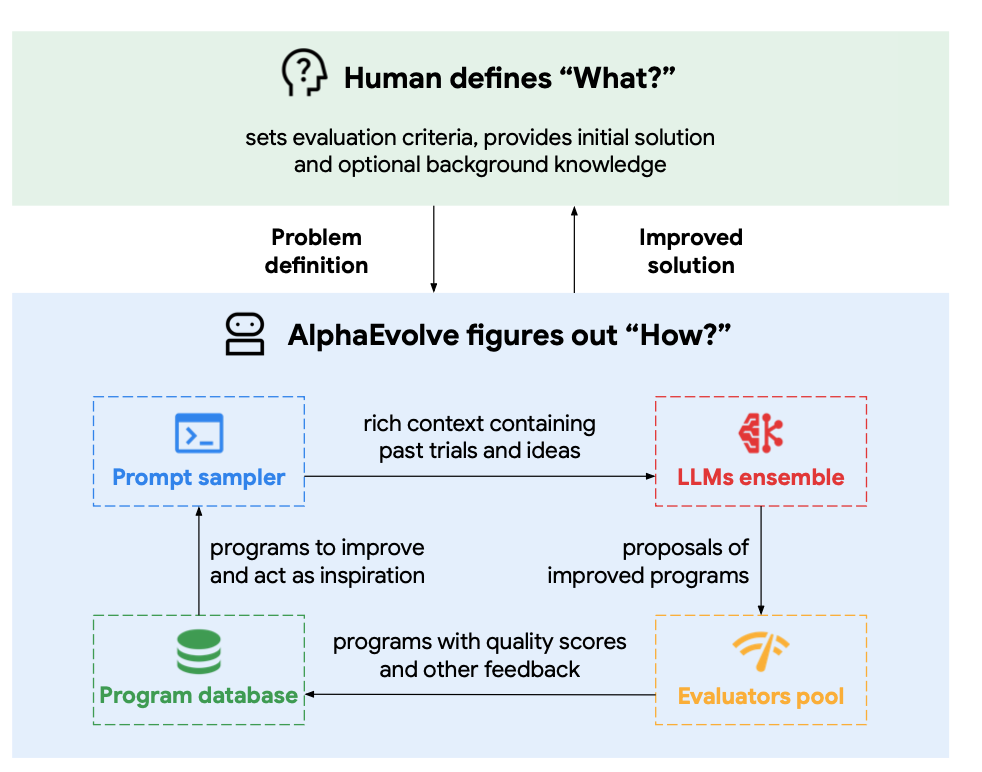 Fig. 1. AlphaEvolve high-level overview. (Image source: Novikov et al., 2025)